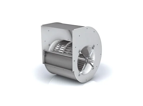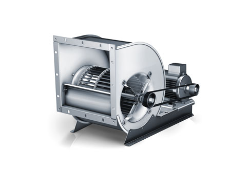 Remdriven dubbelsugande radialfläkt. Förzinkat fläkthjul med framåtböjda skovlar.