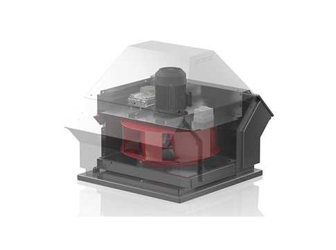 Fläkthjul med bakåtböjda skovlar, dynamiskt balanserat till G2.5. Grundram (fotplåt) av varmgalvaniserad stålplåt. Kåpdel med fläkthjul och motor enkelt utsvängbar för inspektion och underhållsarbeten. Uppåtriktad luftström med lång kastlängd och inbyggda, självstängande backspjäll på fläktutlopp.